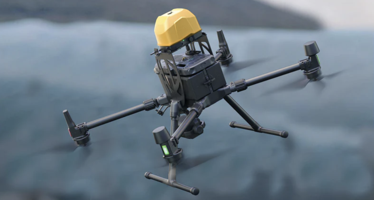Le DJI Matrice 350 RTK, modifiable pour la classe C5 avec les kits Dronavia ou les systèmes proposés par Flyingeye.