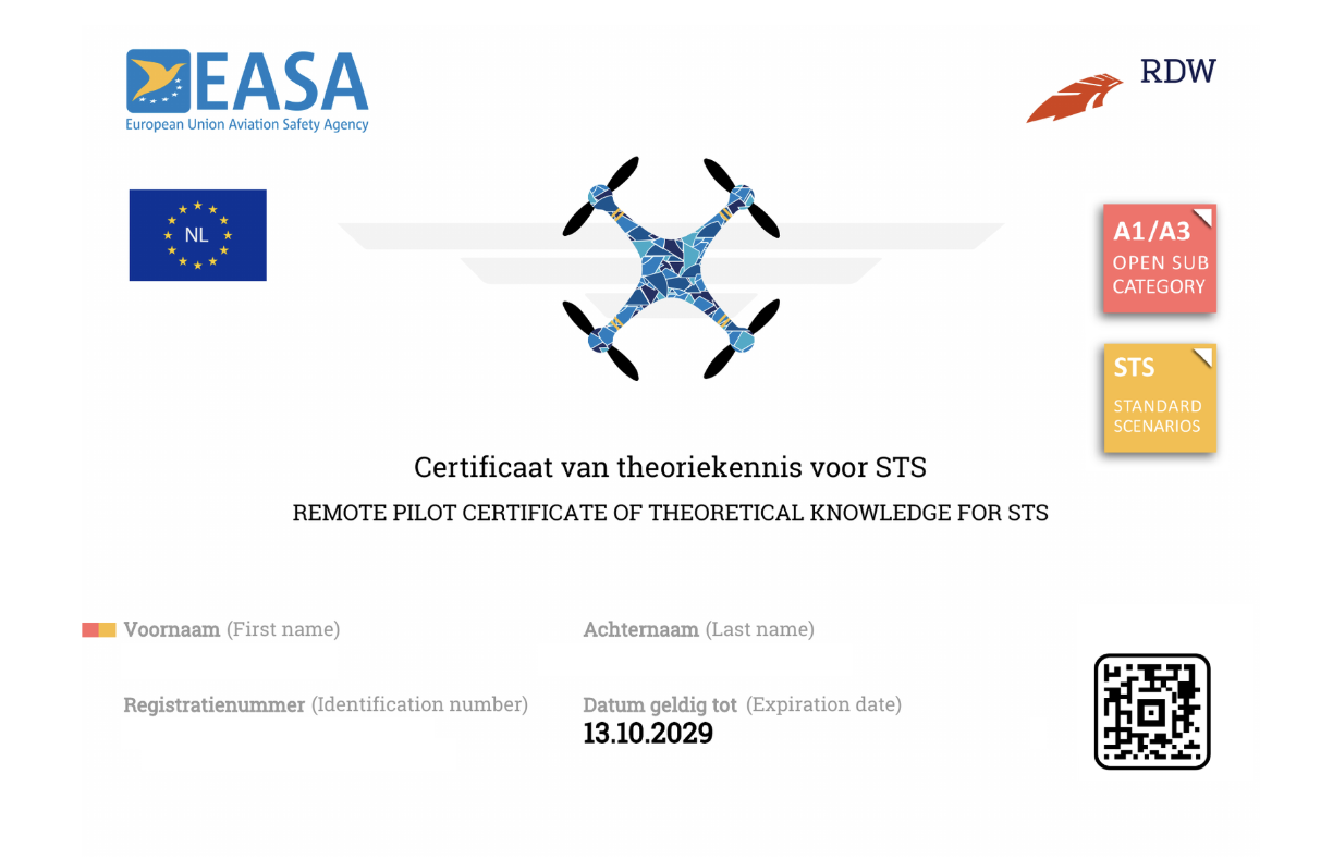 Validité du certificat : 5 ans. À l’issue de cette période, vous devrez repasser l’examen si vous souhaitez continuer à voler dans les scénarios STS.